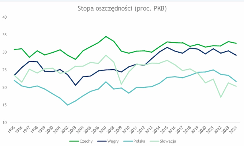 Gorzej od nas wypadają Słowacy. Oni od dekady oszczędzają coraz mniej. Jeszcze w 2015 stopa oszczędności wynosiła tam 26 proc. PKB, a ostatnio - mniej niż 20 proc. (w 2022 było to nawet 17 proc.).