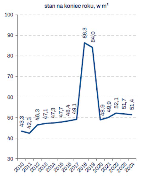 Specyficzne były lata 2018-19. Wówczas średni metraż nieruchomości należących do seniorów, którzy zawarli umowę odwróconej hipoteki, przekraczał 80 mkw.