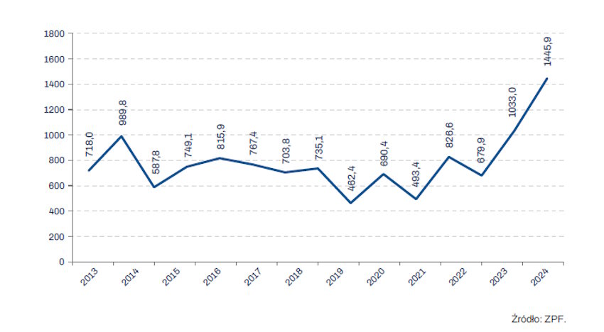 Ile wynosi renta za mieszkanie? W 2024 klienci funduszy hipotecznych otrzymywali przeciętnie po 1445,9 zł miesięcznie. To o 40 proc. (413 zł) więcej niż rok wcześniej i drugi rok z rzędu, gdy świadczenie przekraczało 1 tys. zł.