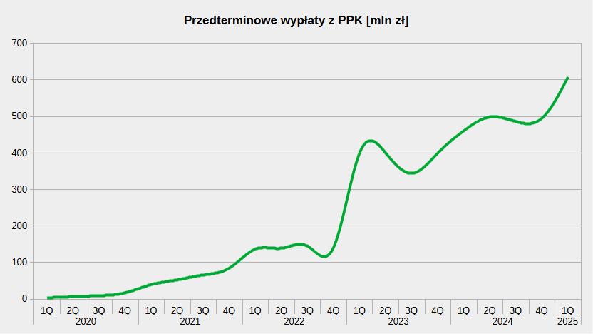 Wraz z liczbą rezygnacji wzrasta także wartość zwrotów z PPK. W I kwartale 2025 po raz pierwszy przekroczyła ona 600 mln zł (w poprzednim roku był to 500 mln zł kwartalnie).