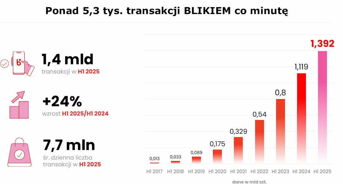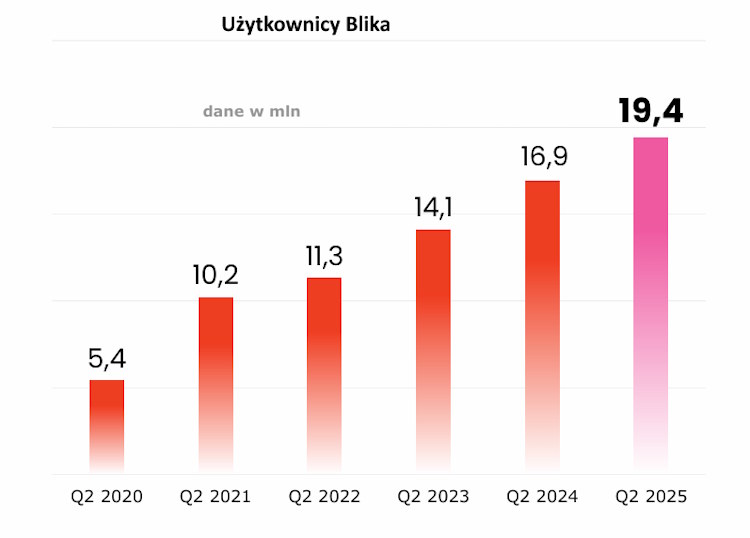 W I połowie 2025 z Blika korzystało 19,4 mln użytkowników (+15 proc. w 12 miesięcy). Statystycznie każdy z nich realizował w miesiącu po 13 transakcji.