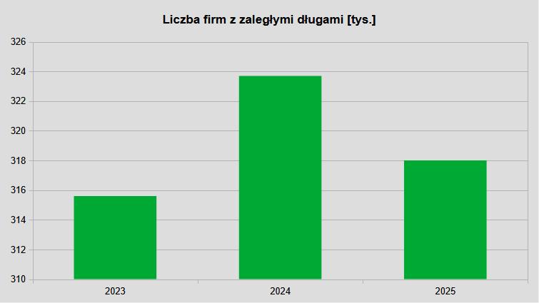 Po pierwsze, dynamika przyrostu tych długów zmalała czterokrotnie (z prawie 8 proc. w 2024). Po drugie, zmniejszyła się liczba firm z zaległościami.
