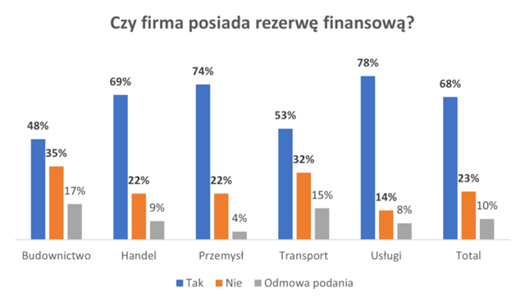 Pod tym względem najlepiej wypadł sektor usług, gdzie 78 proc. przedsiębiorstw poradziłoby sobie z przejściowymi trudnościami wywołanymi niespodziewanymi wydatkami lub/i zatorami płatniczymi.